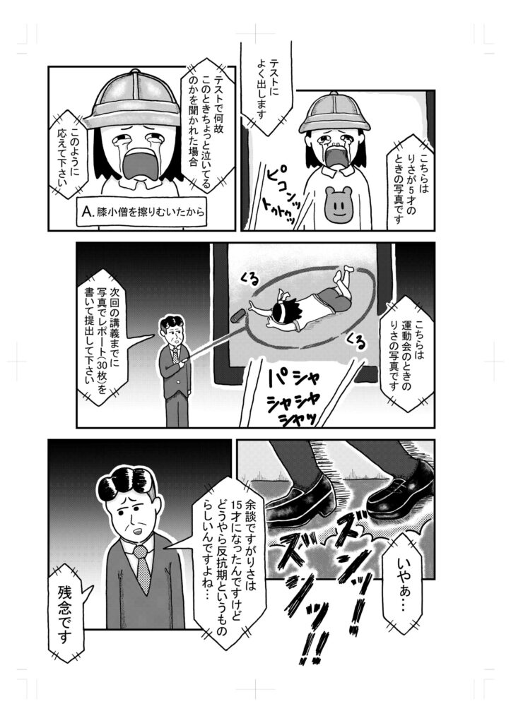 講義中に急病で倒れた父親。しかし牡蠣による腹痛だったというオチである。