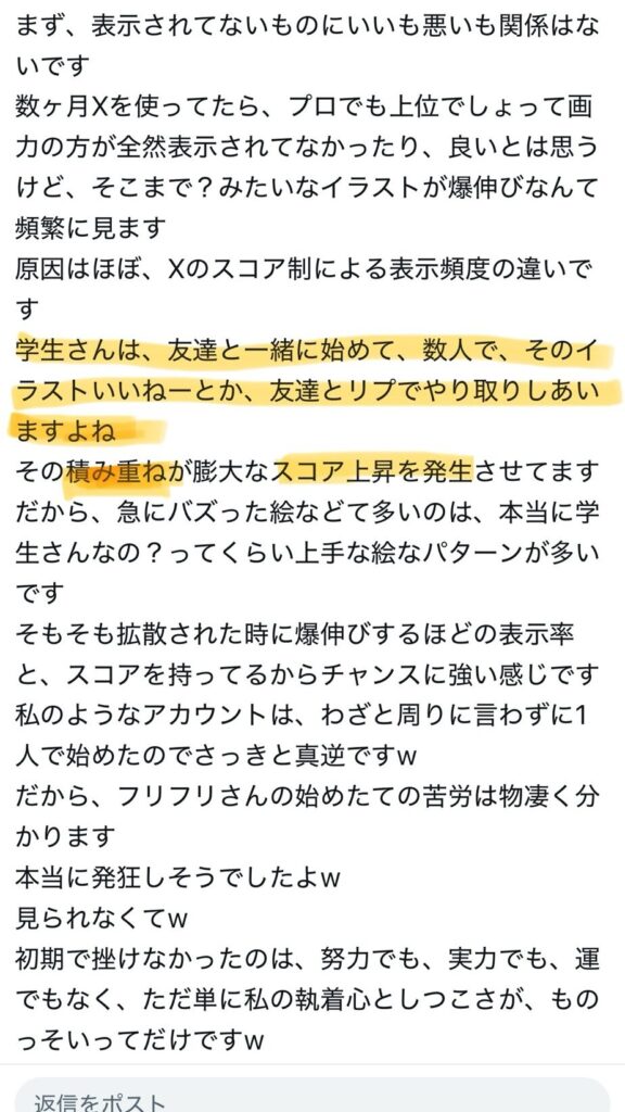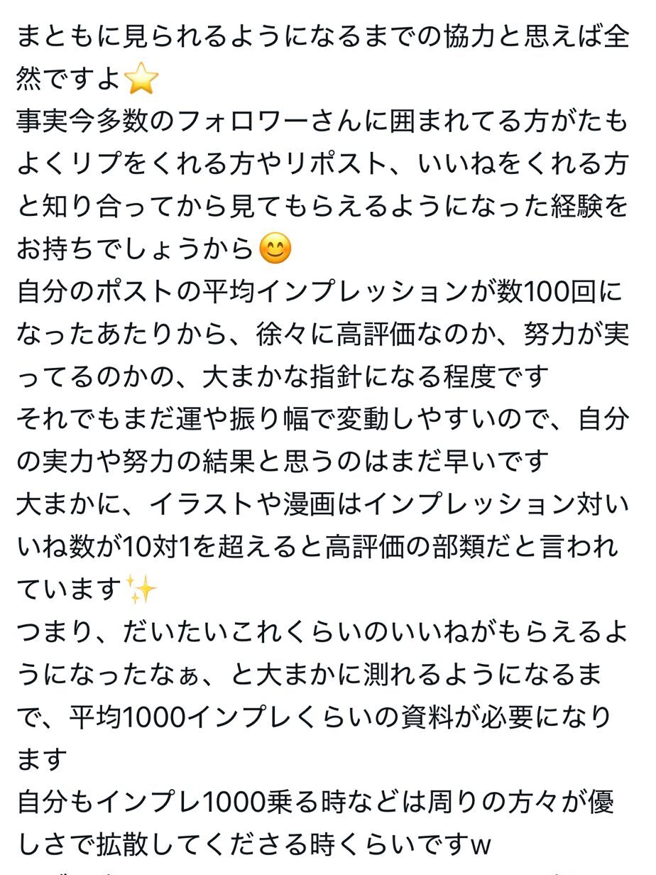 毎日投稿をしてそこにコメントが付けば、ツイッターで誰かの目にとまる確率が増え、インプレッションなるものが上がるというものであった。