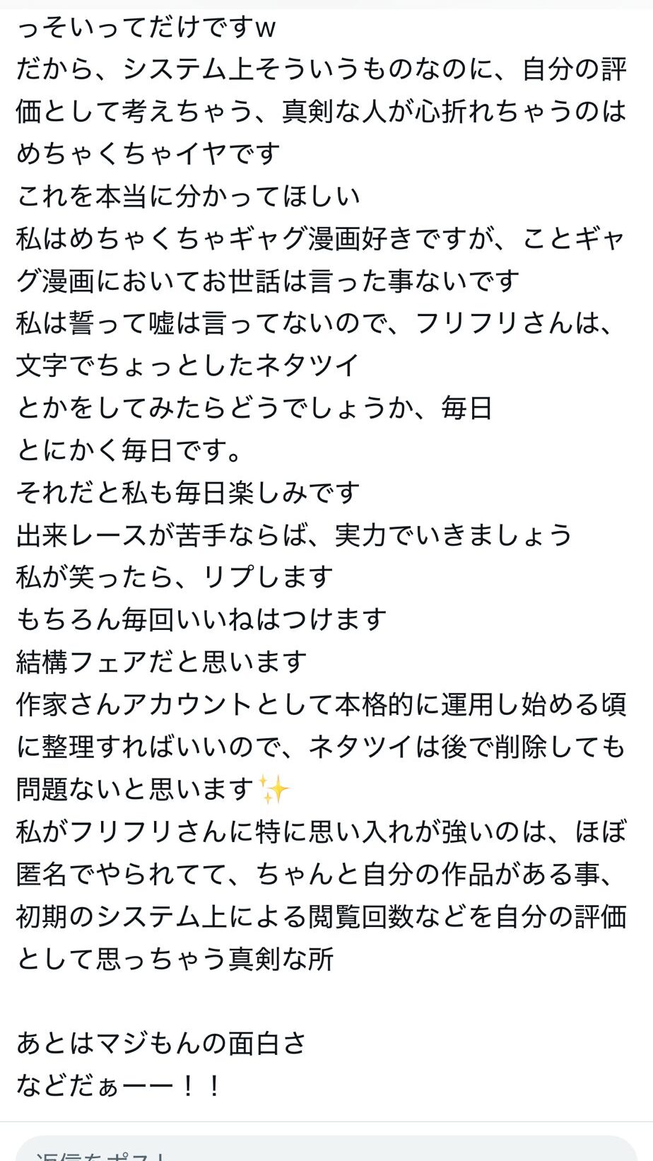 「いや、何でフォロワー数ほぼ1に等しい人にここまで熱心なん?」とか思ったがとにかく熱いひとである。