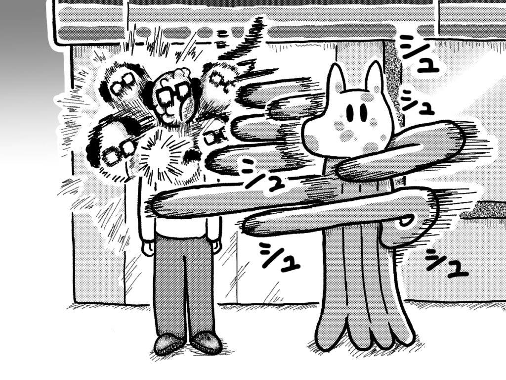 ガウ、マナーの悪い人を指導する。