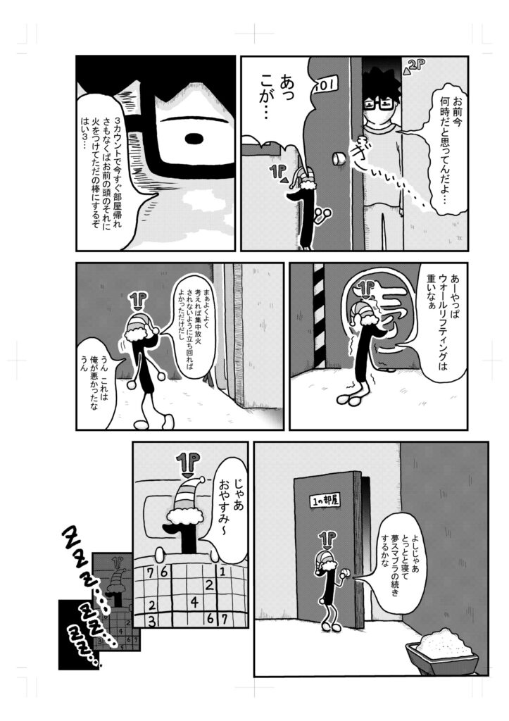 1がブチギレている間、『1Pがいません。1Pが覚醒状態です。』って他のプレイヤーの夢の中で表記されています。