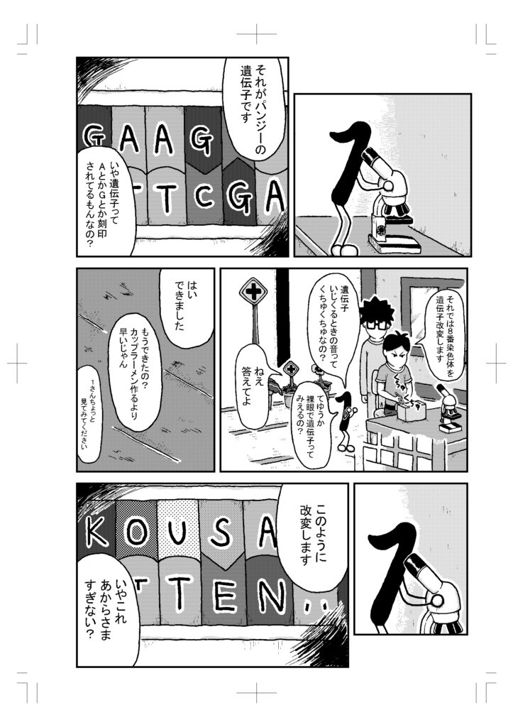 「遺伝子の知識はギャグになりうるのか」というテーマで描かれています。